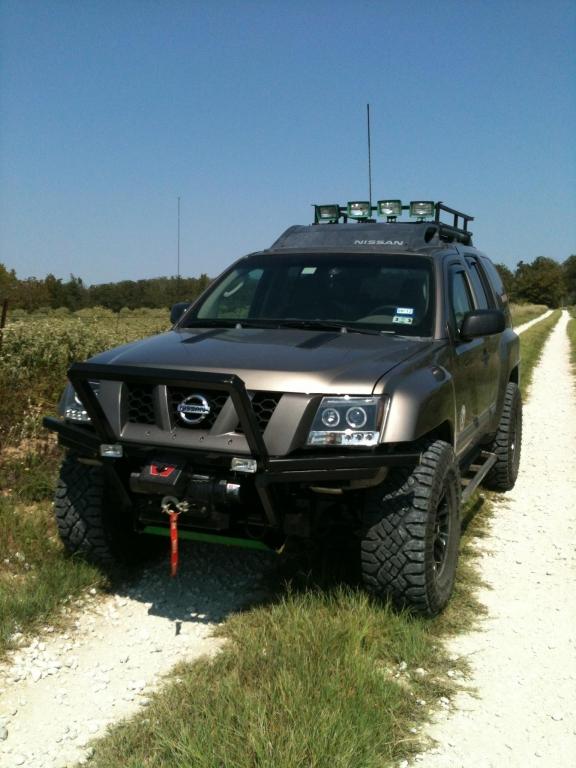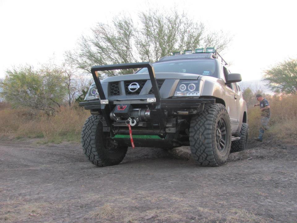 Xterior: - 2" Daystar light (painted to match out color scheme) http://www.daystarweb.com/productdet...?productID=450 - Nisstec Upper Control Arms added 3-10-12 - 12" Front limiting straps added 3-10-12 -Rancho 1.5" Rear-Add-Leaf added 6-18-2012 http://ruggedrocksoffroad.com/15Â...ho-p-5677.html -Powertrax No-Slip Locker added 6-18-2012 http://ruggedrocksoffroad.com/nissan...k-p-35987.html - 285/75R16 BFGoodrich All-Terrain T/A KO removed - 305/70R16 added 6-22-2011 http://www.bfgoodrichtires.com/tire-...o/tire-details - Extended Rancho RS9000XL in Rear ( boots to match color scheme) http://www.gorancho.com/shocks.php?shock=RS9000XL - Rancho RS9000XL Front Shocks w/ Factory coils(2-8-2011) - Extended rear differentail breather (into the right taillight) - Extended front differentail breather (exteneded to the top of the firewall) - Extended Transmission Breather (into the engine compartment at the top of the firewall) - Custom one piece engine and transmission Skidplate (painted the match the color scheme) - 6 Pilot lights with KC bulbs mounted on a custom built light bar attached to the roof rack (removed) - Melt Mod - Energy Suspension Front bumpstops http://www.jegs.com/i/Energy-Suspens...oductId=743966 -Window Vents http://www.weathertech.com/store/mvp...=513&Year=2005 -Aftermarket fog lights in factory bumper (NEW 1-20-2011) http://http://www.thenewx.org/forum/...ad.php?t=34651 - Exterior to interior AC outlet (1-20-2011) -Removed rear swaybar -Removed factory mud flaps - Rear Recovery Points welded into the bumper and brackets(3-29-2011) Interior: - 1,000 watt Cobra Power Inverter mounted under passanger seat (to be done) https://cobra.com/detail/cpi-1000-1-...t-inverter.cfm - Garmin Nuvi 1450T w/ topo maps https://buy.garmin.com/shop/shop.do?cID=134&pID=67374 -Streamlight Stinger LED (mounted in rear cargo area) http://www.streamlight.com/product/product.aspx?pid=123 - Upgraded First Aid kit - Optima yellow top (1-10-2011) - Optima battery mod (1-10-2011) Trail Gear: - (2) 20'x 3" Tow Straps http://www.tractorsupply.com/tow-str...00-lbs-3040083 -(1) 6'x4" Tree Strap http://www.tractorsupply.com/winches...00-lbs-0190774 -(4) 3/4" Clevis Shackle http://www.tractorsupply.com/agricul...n-dia--0268072 - 48" all cast Hi-Lift jack http://www.hi-lift.com/hi-lift-jacks/all-cast.html - Warn M8000 winch Mounted on their 2" reciver mount http://www.warn.com/truck/winches/src/M8000.shtml http://www.warn.com/truck/mounting-s...ti_mount.shtml - Full set "Trail Tools" From Snap-On http://www.snapon.com/ Performance Mods: - DynoMax UltraFlo exhaust kit (8-19-2011) - Jet Performance mass air sensor (8-19-2011) Future Mods: RadFlo coilovers Front tube bumper |